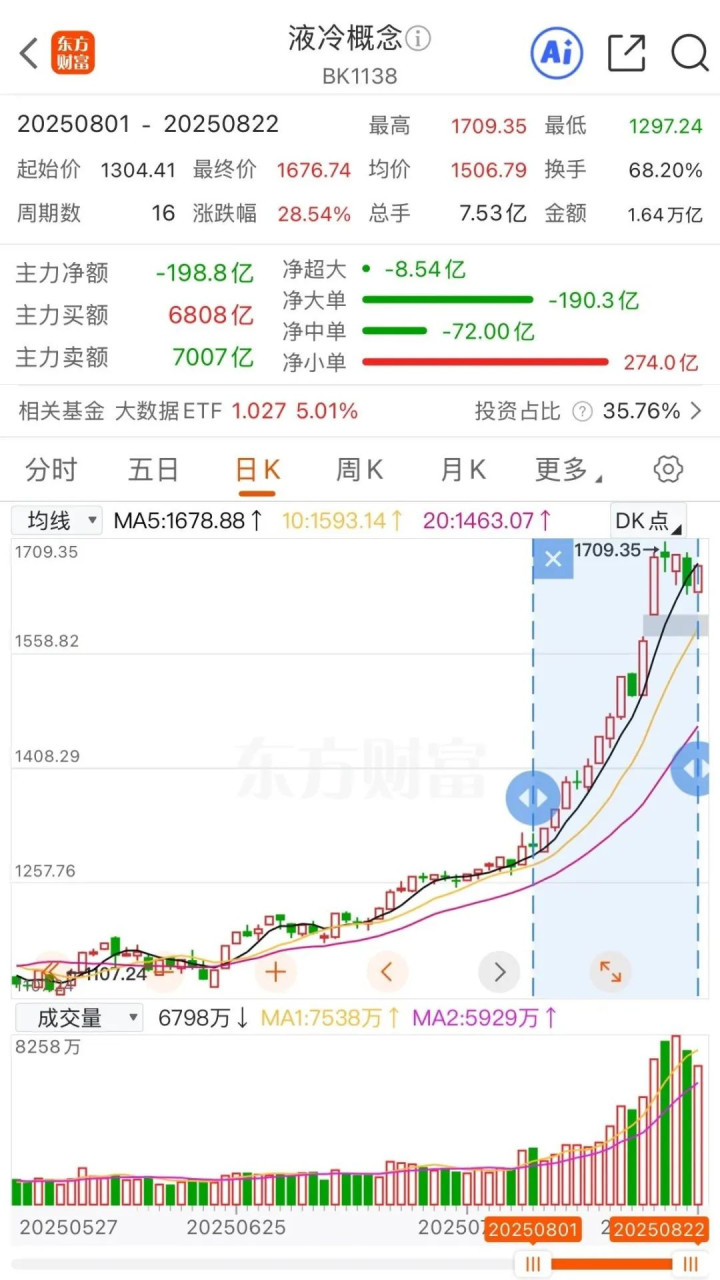 东方财富数据显示,近期,液冷概念板块持续走高,8月以来板块涨幅达28.54%。